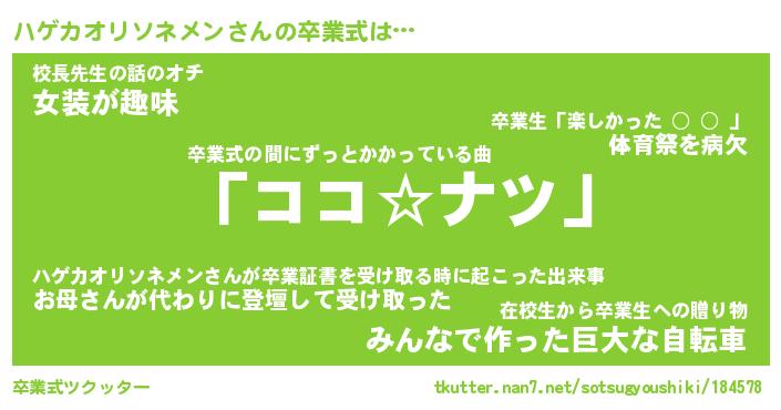 | 伝説のあだ名 | 『不死鳥の竜騎士ハゲカオリソネメン』 |