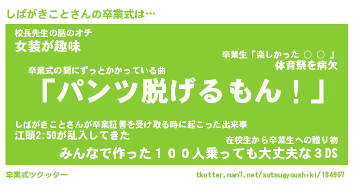 | 伝説のあだ名 | 『不死鳥のスナイパーしばがきこと』 |