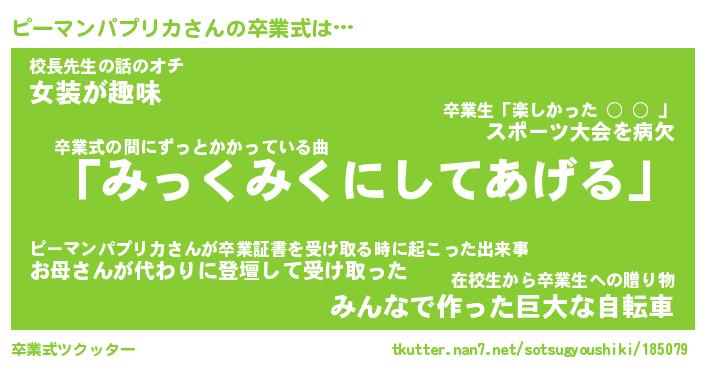 | 胡散臭い通販商品みたいなあだ名 | 『必ず成功するブレスレット…その名も「ピーマンパプリカ」』 |