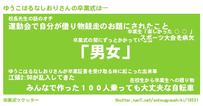 | 胡散臭い通販商品みたいなあだ名 | 『必ず成功するブレスレット…その名も「ゆうこはるなしおり」』 |