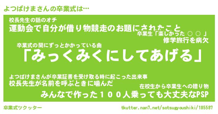 | 伝説のあだ名 | 『伝説のスナイパーよつばけま』 |