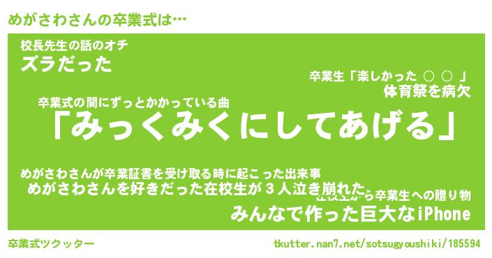 | ヘコむあだ名 | 『めがふぇ~』『なまこ酢』『めがを』 |