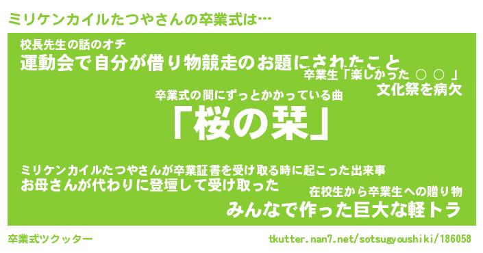 | 伝説のあだ名 | 『封印されし竜騎士ミリケンカイルたつや』 |