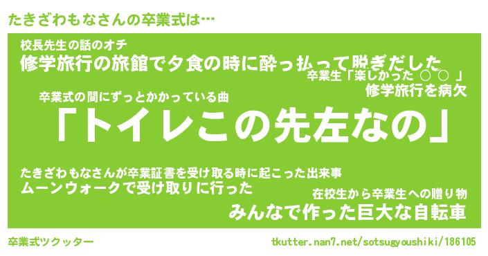 | 恥ずかしいあだ名 | 『プリティーたきざわもな』『たきっちょ』 |