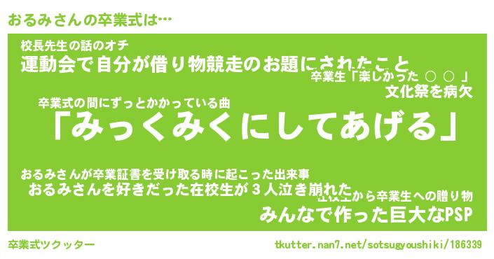 | ヘコむあだ名 | 『おるにゅー』『つくし』『おるお』 |