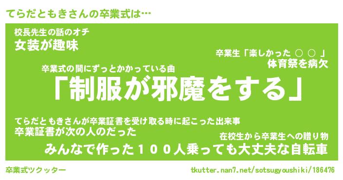 | 胡散臭い通販商品みたいなあだ名 | 『億万長者になれるブレスレット…その名も「てらだともき」』 |
