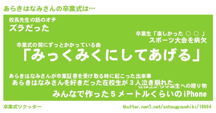 | 胡散臭い通販商品みたいなあだ名 | 『必ず成功するブレスレット…その名も「あらきはなみ」』 |