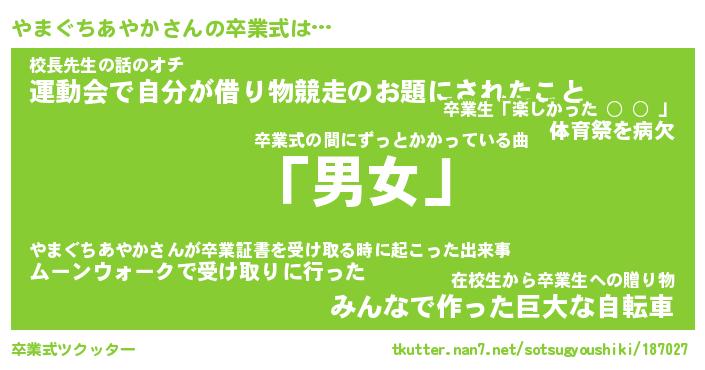 | 伝説のあだ名 | 『伝説のスナイパーやまぐちあやか』 |