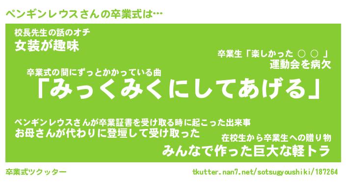| 胡散臭い通販商品みたいなあだ名 | 『必ず成功するブレスレット…その名も「ペンギンレウス」』 |