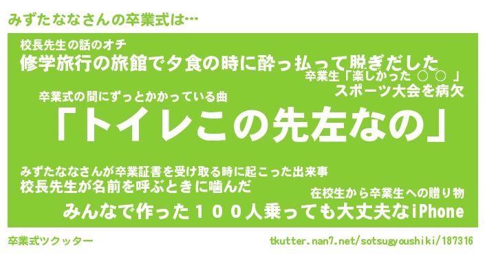 | 胡散臭い通販商品みたいなあだ名 | 『必ず成功するブレスレット…その名も「みずたなな」』 |