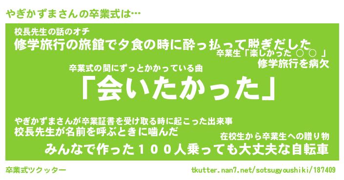 | ヘコむあだ名 | 『やぎにー』『なまこ酢』『やぎ太郎』 |