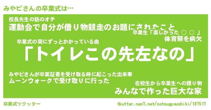 | ピコ太郎風あだ名 | 『ミコ五郎』『ピミ三郎』『ミヤ三郎』 |