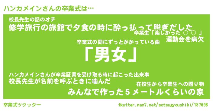 | ヘコむあだ名 | 『ハンにゅー』『牛乳』『ハン太郎』 |