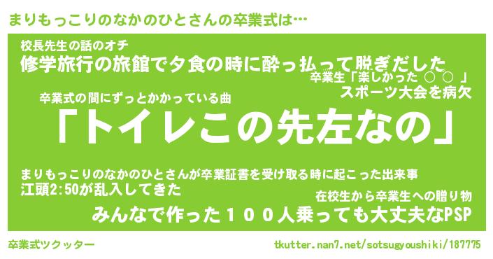 | 伝説のあだ名 | 『伝説のスナイパーまりもっこりのなかのひと』 |