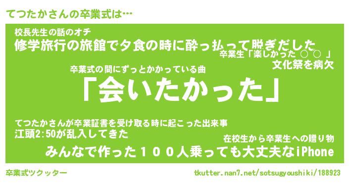 | 意味不明あだ名 | 『ペロリンてつたか』『永久保存てつたか』 |
