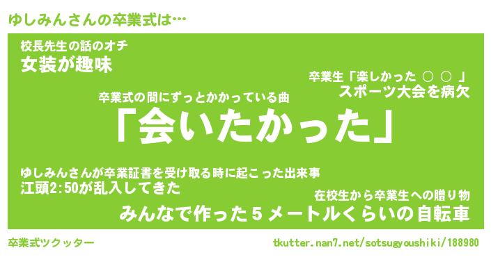 | 意味不明あだ名 | 『ペロリンゆしみん』『永久保存ゆしみん』 |