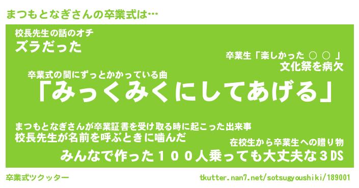 | 胡散臭い通販商品みたいなあだ名 | 『必ず成功するブレスレット…その名も「まつもとなぎ」』 |