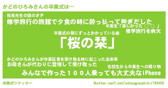 | ヘコむあだ名 | 『かどもー』『牛乳』『かどぷりん』 |