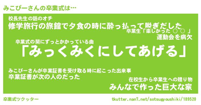 | ピコ太郎風あだ名 | 『ミコ太郎』『ピミ次郎』『ミコ史郎』 |