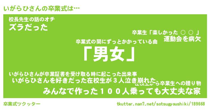 | ピコ太郎風あだ名 | 『イコ五郎』『ピイ一郎』『イガ八郎』 |