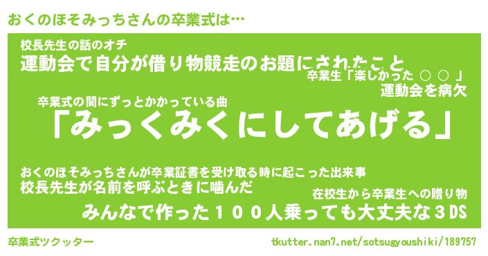 | 伝説のあだ名 | 『伝説のスナイパーおくのほそみっち』 |