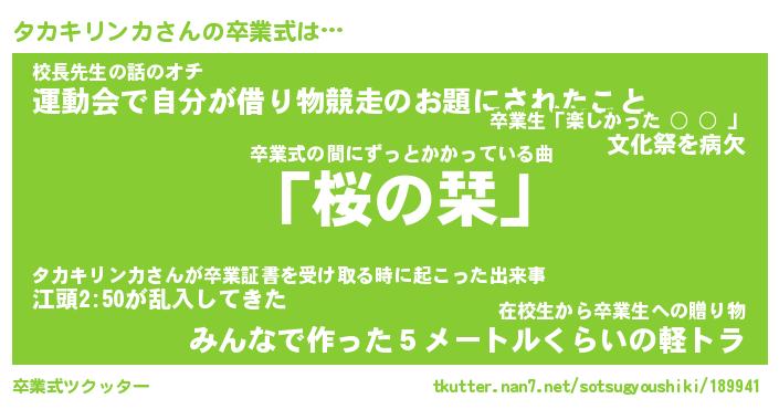 | 男性向けラノベタイトル風あだ名 | 『タカキリンカアートオンライン』 |