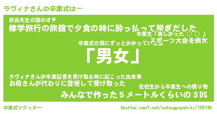 | 意味不明あだ名 | 『ペロリンラヴィナ』『永久保存ラヴィナ』 |