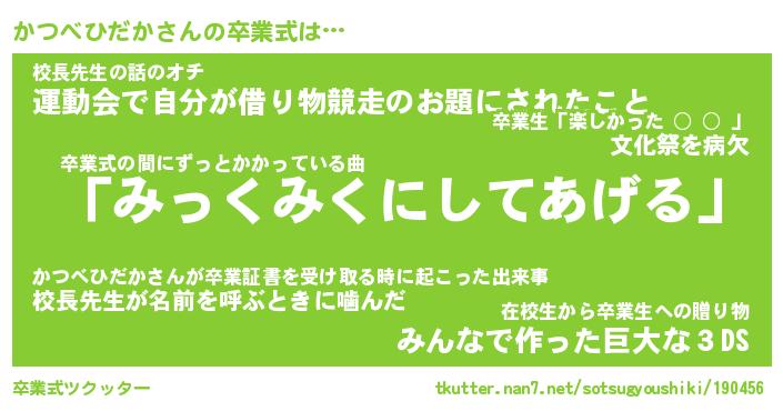 | 胡散臭い通販商品みたいなあだ名 | 『必ず成功するブレスレット…その名も「かつべひだか」』 |