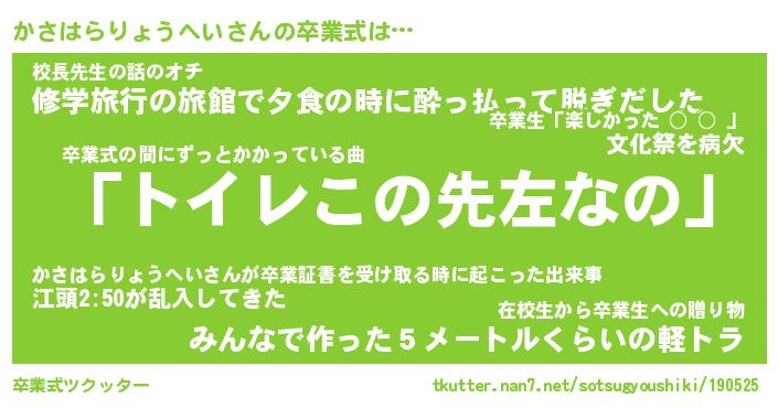 | 胡散臭い通販商品みたいなあだ名 | 『必ず成功するブレスレット…その名も「かさはらりょうへい」』 |