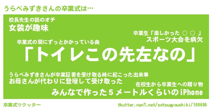 | 伝説のあだ名 | 『伝説のスナイパーうらべみずき』 |