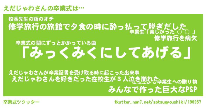 | 胡散臭い通販商品みたいなあだ名 | 『必ず成功するブレスレット…その名も「えだじゃわ」』 |