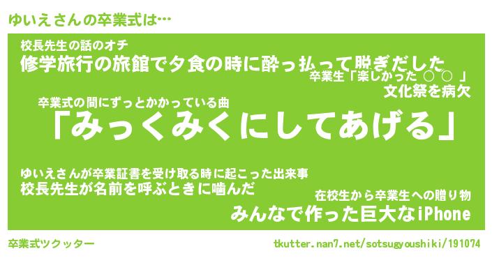 | ピコ太郎風あだ名 | 『ユコ史郎』『ピユ次郎』『ユイ十郎』 |