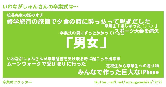 | 胡散臭い通販商品みたいなあだ名 | 『必ず成功する霊験あらたかなお札…その名も「いわながしゅん」』 |