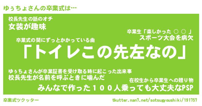 | 胡散臭い通販商品みたいなあだ名 | 『必ず成功するブレスレット…その名も「ゆぅちょ」』 |
