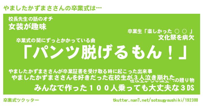 | ツイッター | やましたかずまささんのツイッターID『masyumaro_kun』 |