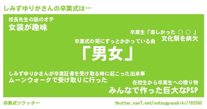 | ヘコむあだ名 | 『しみにー』『酢こんぶ』『しみっ子』 |