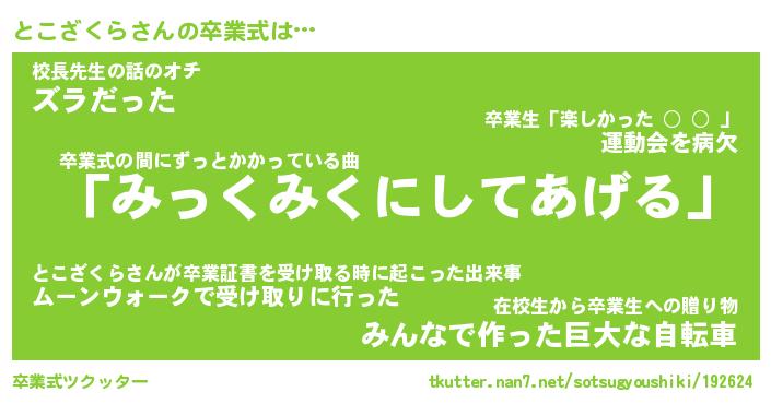 | ヒーロー風カッコイイあだ名 | 『スーパートコザクラ』『天弓騎士トコ』 |