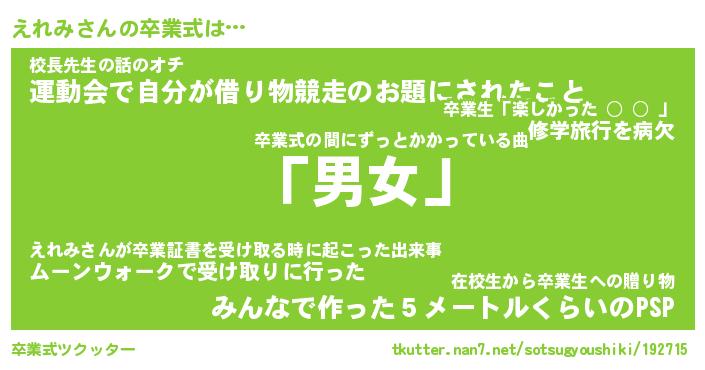 | 男性向けラノベタイトル風あだ名 | 『えれみの憂鬱』 |