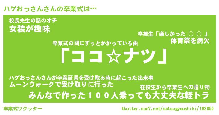| ピコ太郎風あだ名 | 『ハコ四郎』『ピハ次郎』『ハゲ史郎』 |