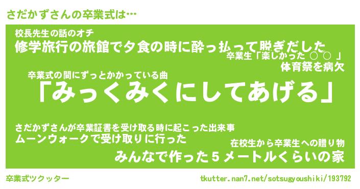 | 伝説のあだ名 | 『伝説のスナイパーさだかず』 |