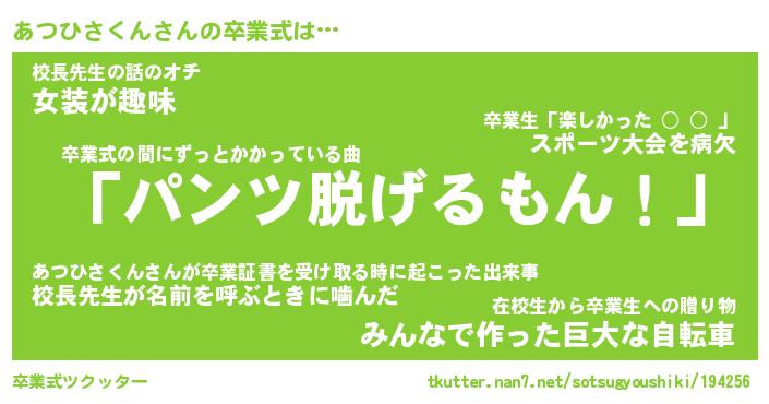| 伝説のあだ名 | 『不死鳥のスナイパーあつひさくん』 |