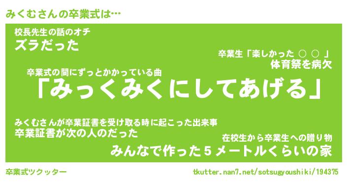 | 胡散臭い通販商品みたいなあだ名 | 『必ず成功するブレスレット…その名も「みくむ」』 |