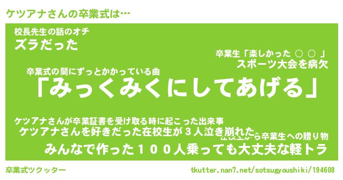 | ヒーロー風カッコイイあだ名 | 『スーパーケツアナ』『幻影騎士ケツ』 |