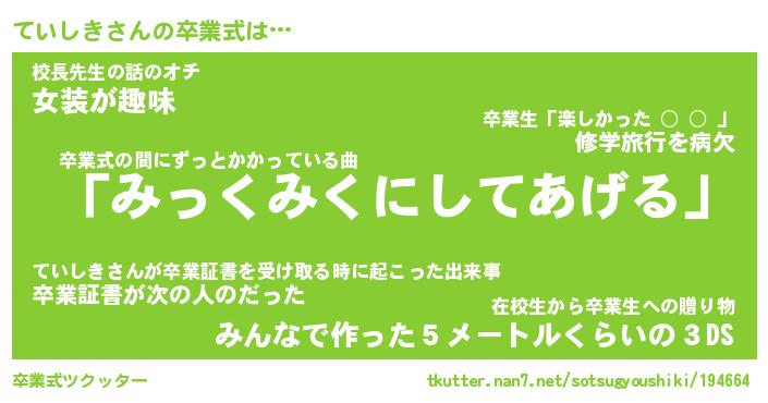 | 意味不明あだ名 | 『ペロリンていしき』『永久保存ていしき』 |
