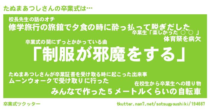 | 伝説のあだ名 | 『封印されし竜騎士たぬまあつし』 |