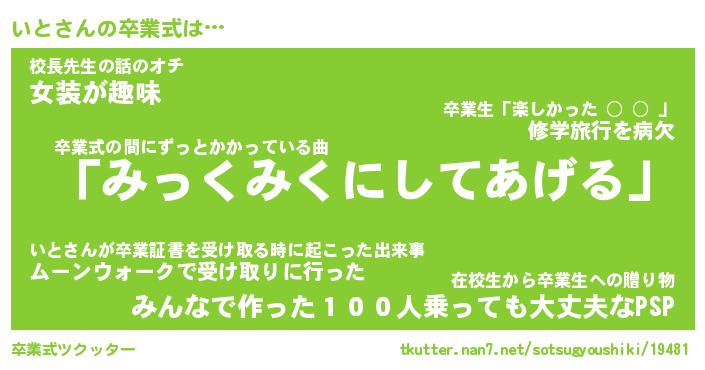 | ピコ太郎風あだ名 | 『イコ四郎』『ピイ一郎』『イト八郎』 |