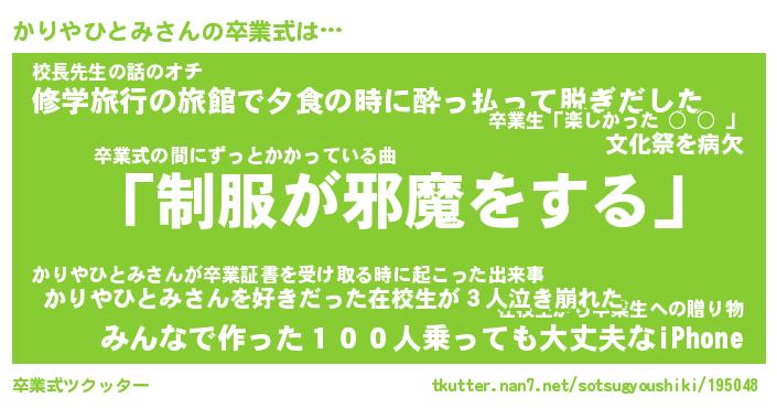 | ヘコむあだ名 | 『かりにー』『なまこ酢』『かりお』 |