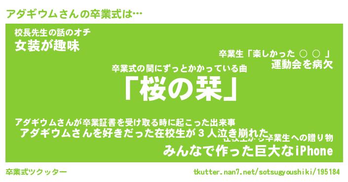 | ピコ太郎風あだ名 | 『アコ六郎』『ピア史郎』『アダ二郎』 |