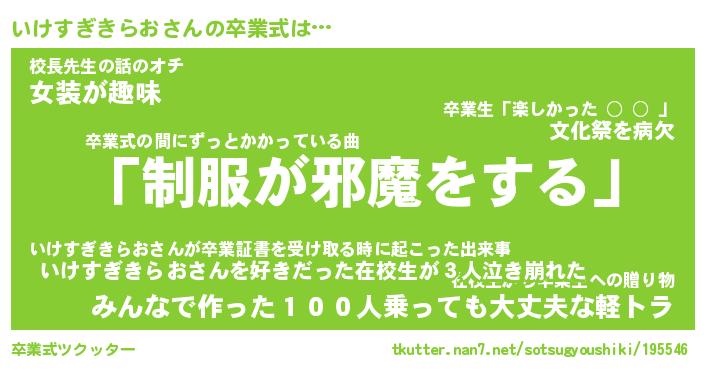 | ツイッター | いけすぎきらおさんのツイッターID『dendenmushi_star』 |