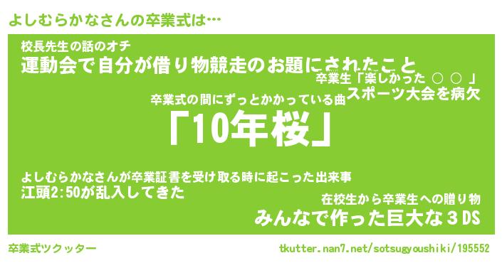 | 伝説のあだ名 | 『封印されし竜騎士よしむらかな』 |